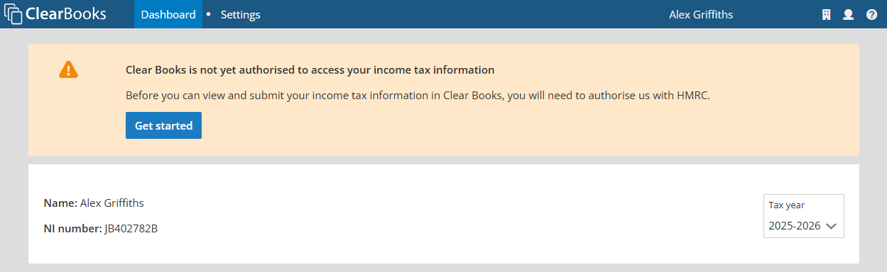 After you have authorised Clear Books, you will be able to view your MTD Tax Return information.